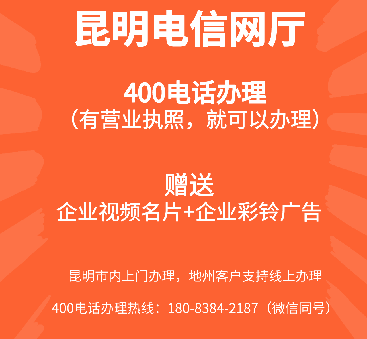昆明400电话办理:赠送企业视频名片和企业彩铃
