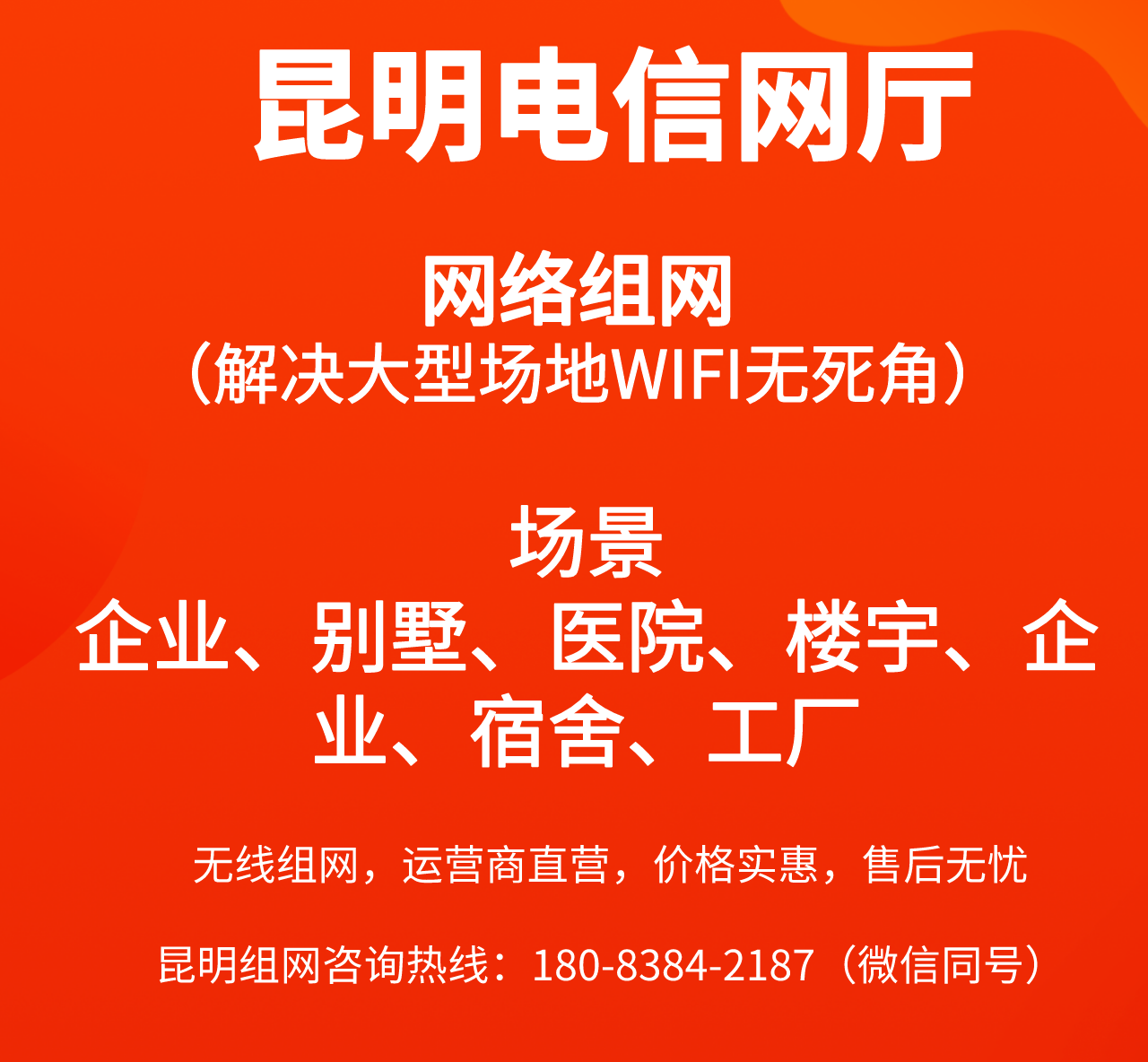 昆明公司、商场、酒店、洗浴中心【无线覆盖】上门办理